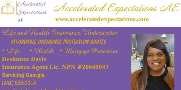 Life is too short to live without direction. That's why ACCELERATED EXPECTATIONS is shining A SPOTLIGHT ON Deshunee Davis, a very reputable and compassionate Life Insurance, Health Insurance and Mortgage Protection Underwriter that can help you discover your purpose and create a clear vision for your future.